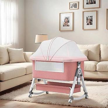 04. Krevetac za bebe 3u1 Krevetac sa tockovima, dusekom i mrezom protiv komaraca Nocni krevetac za bebe sa udobnim dusekom Cena 10.999 din Dimenzije na slici✅✅Beograd