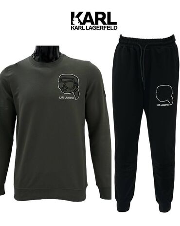 Muški komplet trenerke – gornji deo i donji DEO, S, M, L, XL, XXL - Brend varijante: Karl Lagerfeld, Nike, HUGO (Hugo Boss) - Gornji deo: dukser bez rajsferšlusa, okrugli izrez, dugi rukavi, elast...