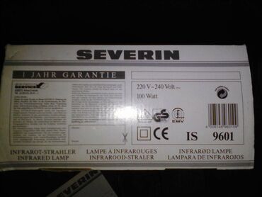 IC lampa Severin, snaga 100 W, sa kvalitetnom Philips sijalicom i pripadajućim uputstvom, kupljena u Nemačkoj, NEOTPAKOVANA. Jednostavna je za upotrebu (2 x dnevno po 15 minuta), apsolutno bezbedna (ne emituje štetna zračenja) i može se koristiti za individualne i profesionalne namene (IC zraci prodiru duboko u kožu i potkožna tkiva, šire krvne sudove i poboljšavaju cirkulaciju, čime olakšavaju reumatske bolove, neuralgije, upale, povrede, bolove u mišićima, zubobolju, probleme sa sinusima, ubrzavaju oporavak od prehlade, dubinski čiste kožu u kombinaciji sa kozmetičkim preparatima).