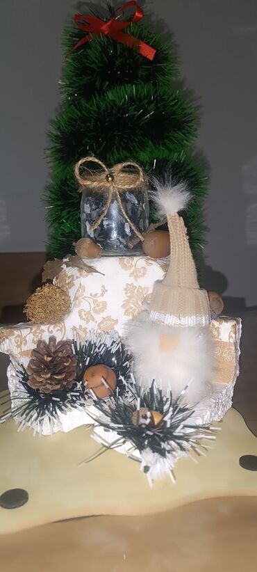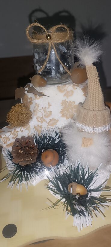 Ručno rađene novogodišnje dekoracije – skandinavski patuljci (gnome) i mini jelke. - Unikatni patuljci sa mekanim bradicama, plišanih kapa i razigranih detalja: pomponi, perlice, mašnice, cvetići,...