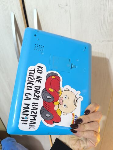 - Plastična interaktivna tabla u obliku „tablet“ igračke, živopisnog dizajna sa vozićem i likovima.