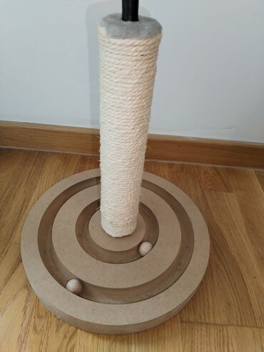 - Stabilna kružna baza od MDF-a sa tri koncentrična kanala u kojima se nalaze drvene kuglice – mačka ih šapom gura u krug, što pruža dodatnu stimulaciju i zadržava pažnju.