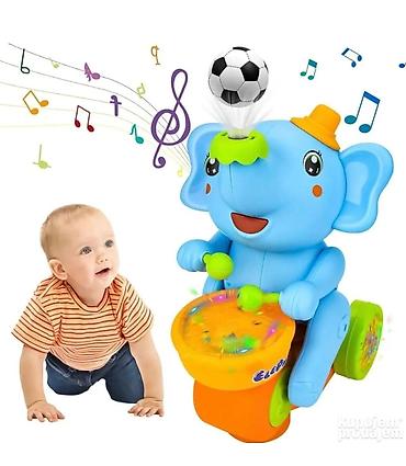 Uključivanjem igračke, slon se kreće unapred, izbacuje lopticu, svira bubnjeve i emituje atraktivna 3D svetla. Sve to privlači pažnju bebe i motiviše je da puzi, pomera ruke i noge u ritmu muzike, čime se jačaju mišići i razvija motorika.