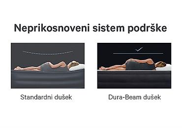 - Prednosti u odnosu na standardne naduvne dušeke: ravnomernija raspodela težine, bolja podrška kičmi i manja deformacija tokom noći.