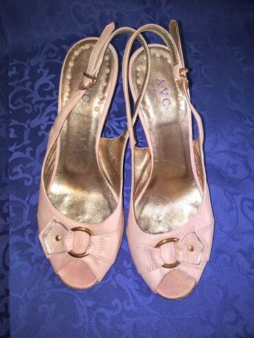 Skupocene kozne sandale AVC Roma, prelepe boje, kupljene u Italiji, obuvene svega par puta, ako nove. Lice, postava i djon od najfinije meke koze. Visina stikle 8cm. Stabile i udobne. Broj 38, duzina gazista 24,5cm.
