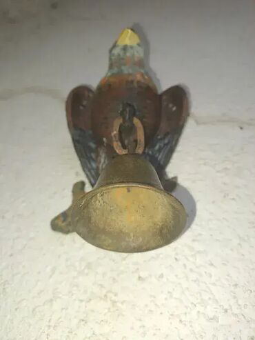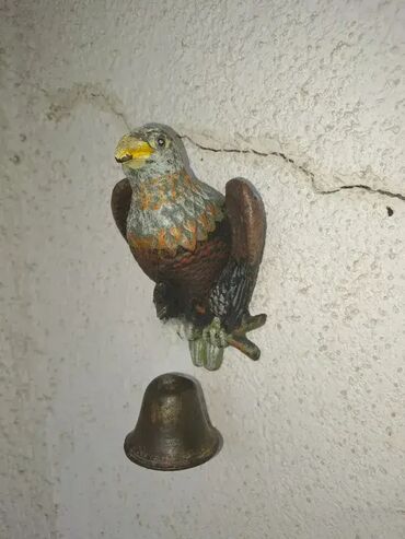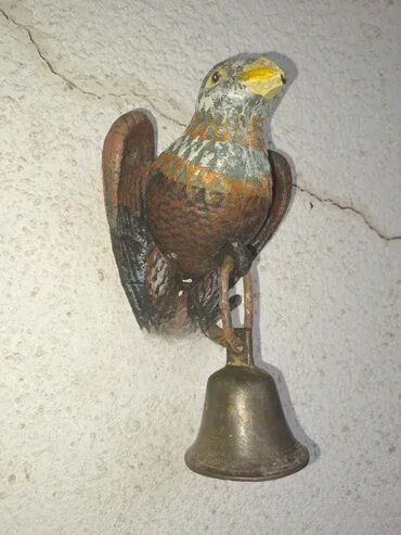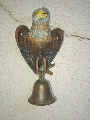 O trošku kupcaPokupiti na licu mestaIzuzetan i redak primerak, starog ulaznog zvona sa orlom od livenog gvozdja i bronzanim zvonom. Ukupna visina sa zvonom 17cm.
