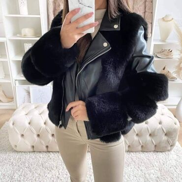 Ženska jakna, svetlo bež/šampanj ton. - Kroj: kratka, strukirana silueta sa elastičnim rebrastim pojasom i manžetnama - Kopčanje: centralni rajsferšlus pune dužine - Kragna: visoka, postavljena, s...