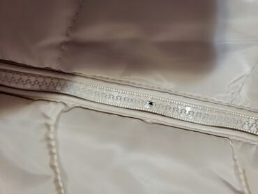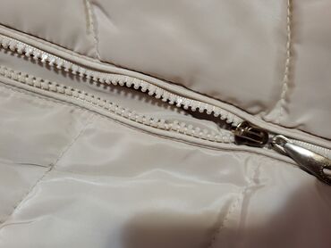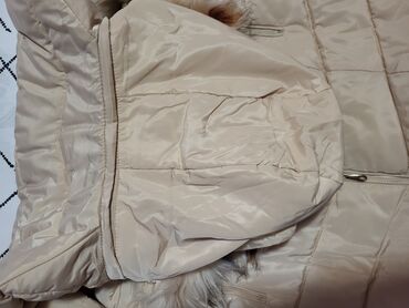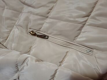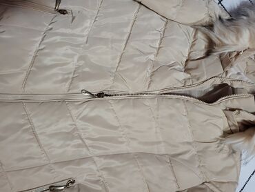 Bela zimska jakna sa rajsferšlusom i kragnom na zatvaranje. Topla postava od veštačkog krzna u bež boji duž cele unutrašnjosti. Dva prednja kosa džepa. Elastične ranfle na rukavima i na donjem rubu...