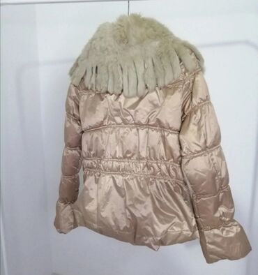 Topla zimska jakna sa kapuljačom - Spoljašnji dezen: narandžasto-crno-bela karo (argyle) šara - Postava: veoma topla, mekana “šuš”/veštačko krzno u bež boji, kompletno postavljena uključujući kapu...