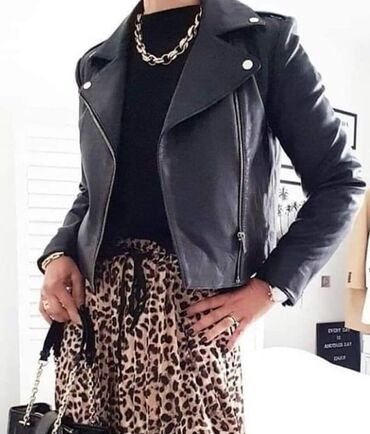 Ženska kožna jakna DARMIL, veličina 38. - Boja: crna - Materijal: prirodna koža (mekana, glatka tekstura) - Kragna: kratka (motociklistički stil) sa driker-kopčom - Zatvaranje: centralni metalni r...
