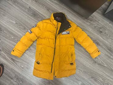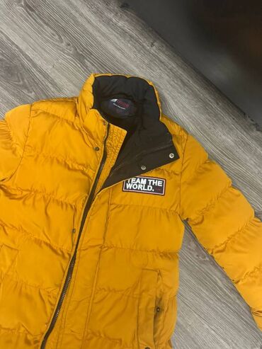 Druga veličina (visina u cm)Jakna za dečaka, 14-15 godina. Topla, kvalitetna, zimska, nošena a od mana ima, ispod gornjeg kopčanja na nitne, koje ide preko patent zatvarača (ne vidi se jer je ispod) otpao je donji deo nitne i ostala rupica, koja se može zašiti ili nositi ovako jer se i ne vidi spolja i jedan džep se na jednom mestu iznutra malo rašio.