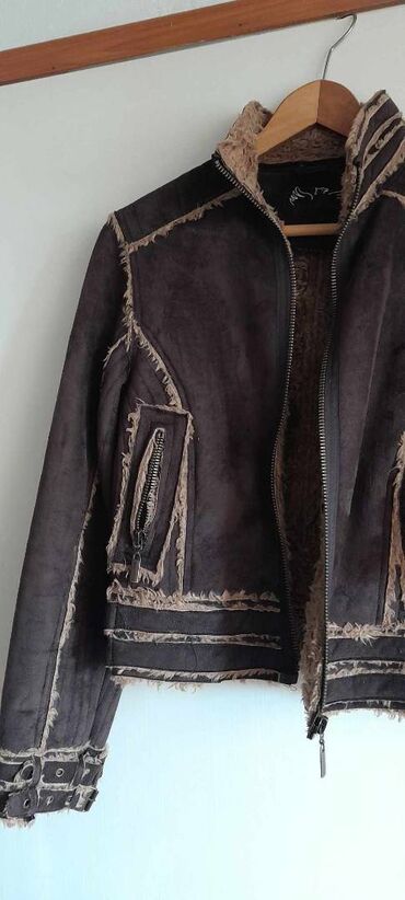 JAKNA zenska ,fantasticna , nenosena , velicina L , imitacija prevrnute koze , napa .