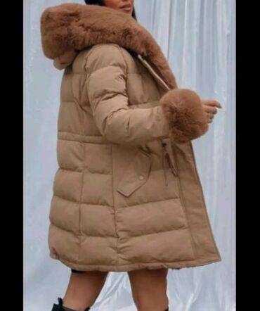 Ženska zimska jakna/kaput sa kapuljačom i veštačkim krznom - Kroj: strukiran, dužina do iznad kolena, pojas za vezivanje koji naglašava struk - Materijal: prošivena tkanina sa dijamantskim štepom,...