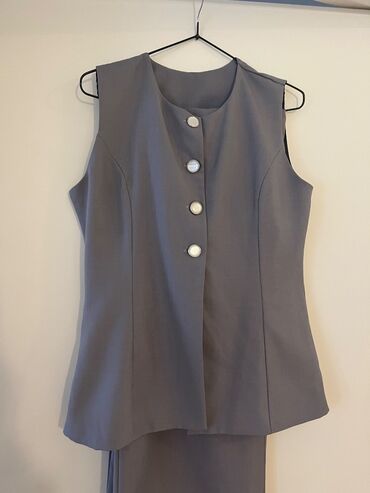 Ženski elegantni sako i pantalone – može kao komplet ili odvojeno. - Model: strukirani sako sa jednim dugmetom, špic reverima i dekorativnim čipkanim umecima sa strane i u peplum delu; pantalone r...