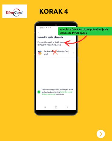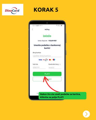👉Obratite pažnju na Korak 4 - prvo polje se odnosi na uplatu DINA karticom, a drugo polje na uplatu drugim karticama!