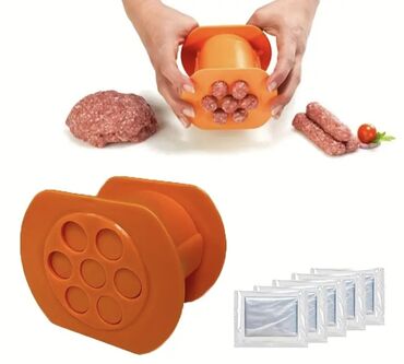 - U paketu: narančasti kalup/preša; na fotografijama su prikazane i kesice za pakovanje porcija.