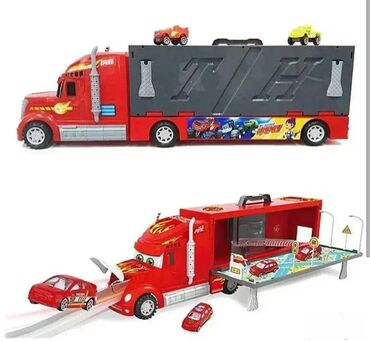 Kamion U Kojem Su Postavljene Staze I Bočni Zid Za Izlaz Automobila I Tobogan. Vrh Nosača Je Opremljen Ručkom, Zahvaljujući Kojoj Dete Može Lako Nositi Igračku I Poneti Je Sa Sobom Na Putovanje Ili U Šetnju. Igračka Ima Zvučne I Svetlosne Efekte.