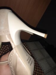 Beli ženski salonke na punu petu sa platformom i kaišićem oko članka. - Dizajn: zaobljeni vrh, zatvorena peta, elegantna silueta. - Peta: stabilna blok peta srednje do više visine, uz diskretnu pr...
