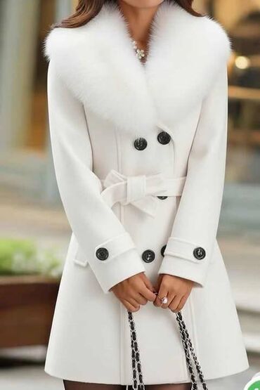 Ženski kaput – elegantan model sa pojasom - Kroj: midi dužina, ravna silueta sa kaišem za strukiranje, dvoredno kopčanje (dugmad napred), prorez pozadi za lakše kretanje - Kragna/laprle: široki re...