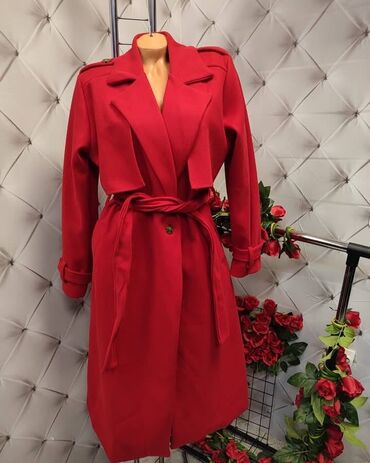 Ženski crveni kaput sa crnim krznenim ovratnikom/šalom. - Model: elegantan, ravnog kroja, dužina do kolena - Boja: intenzivno crvena - Detalji: veliki crni krzneni dodatak preko ramena i grudi (mo...