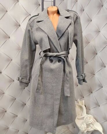 Ženski kaput, veličina 40. Sivi, teksturirani materijal. Klasičan kroj sa širokim rever kragnom, dužina ispod kukova. Diskretno postavljen iznutra za udobnost. Praktičan za hladnije dane i lako uk...