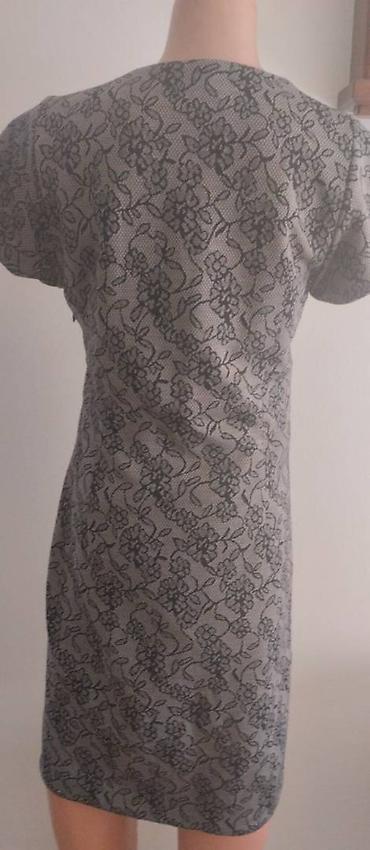 Odlično očuvana ZEKSTRA haljina. Boja je u osnovi siva sa crnim cvetovima. Ima postavu. Ne piše sastav. Mislim da je mešavina pamuka poliestera i elastina. Izgleda kao da je od čipke. Ne piše veličina zato se vodite merama.