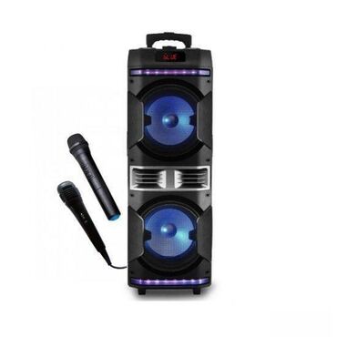 Xplore zvučnik THUNDER XP8819Prenosni karaoke sistemSistem: 2.1Snaga zvučnika (max): 1000 WSuper prenosni zvučnik + 2 mikrofonaMikrofoni: – 1 x žični– 1 x bežičniUgrađen FM radioPodržani formati: MP3 i WMAZvučnici: – 2x 10″ (25,4 cm) BASS subwoofer– 3″ (7,62 cm) TREBLE tweeterPovezivanje: – Bluetooth– USB port– MicroSD slot– AUX-in 3,5 mm– mikrofonski 6,35 mm x 2Karaoke funkcija sa priloženim mikrofonimaUgrađeni DISCO LED LightLED displej sa plavim osvetljenjemDaljinski upravljačUgrađena punjiva baterija: 12 V/4,5 AhNapajanje: AC 110-240 V, 50/60 MHzUgrađena ručica i točkići za lakši transportKućište od ABS plastikeDimenzije: 350 x 347 x 1039 mmBoja: crna