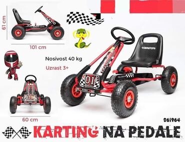 👉 Poput bicikla, ovaj karting se pokreće pomoću pedala, ali se upravlja volanom, kao kod kola, što doprinosi atraktivnosti ove igračke.