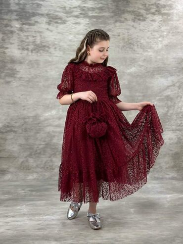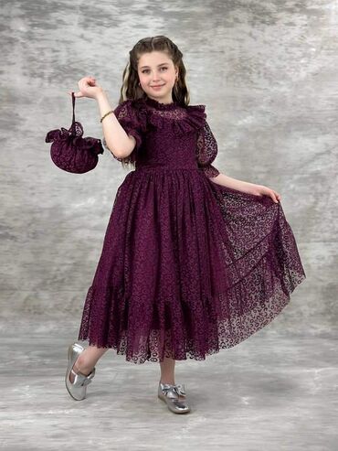 Dečije letnje haljine – set od 2 komada - Haljina 1: bele osnove sa ružičastim etno/geometrijskim dezenom u prugama. Model je širi, višeslojan (volani), dužine do kolena ili malo ispod, sa dugim r...