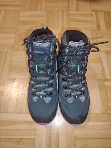 - Tip: visoke planinarske/treking cipele sa pertlama i kukicama za brzo vezivanje