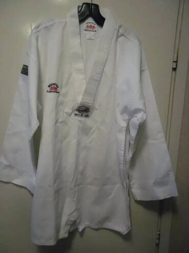 O trošku kupcaPokupiti na licu mestaKimono za borilački sport Taekwondo Mountain Kukkiwon Booth , br.4 ,180 cm.Dimenzije gornjeg dela:Duzina 83,sirina ramena 60,sirina dole 58,rukavi spolja 50 cm.