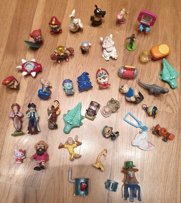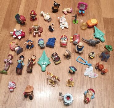 Kinder suprise igracke razne na komad, funny students, mislim da je majstor bob mešalica, hello kitty igračka, vatrogasci, monster and pirates 2008 godina, razno.. mislim da je vecina kinder.