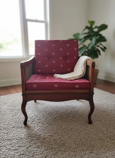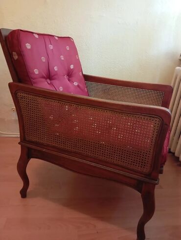 Klasična fotelja sa drvenim ramom i pletenim bočnim/leđnim panelima