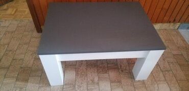 Klub sto se izrađuje od univera debljine 18 mm. Ploča stola je u sivoj boji, dok je ostatak stola bele boje.