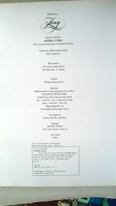 Knjiga: Aversi i versi. Reprezentativna knjiga-antologija evropskih pisaca za decu čiji su likovi našli na novčanicama država Evrope. Godina izdanja: 2012, tvrd povez, 32 cm, ilustrovano, 137 strana