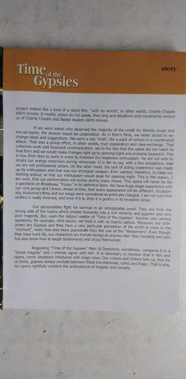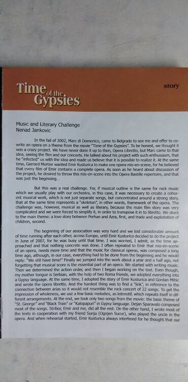 Knjiga: Time of the Gypsies, Emir Kusturica Pank opera, samo knjiga