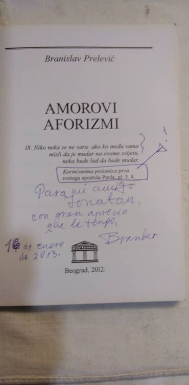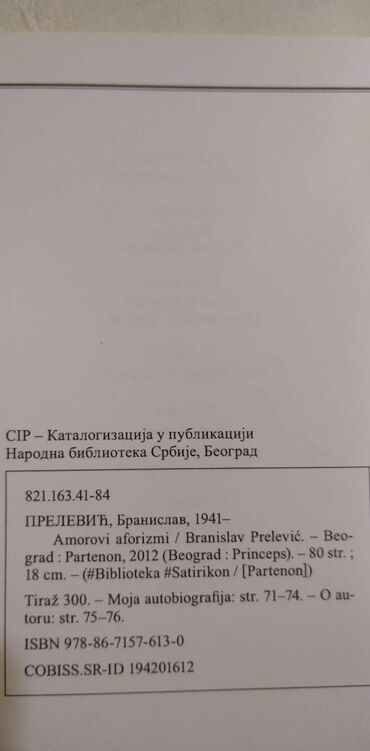 UpotrebljenоKnjiga:Amorovi aforizmi Branislav Prelevic, format 18 cm. 2012 , 77 str.
