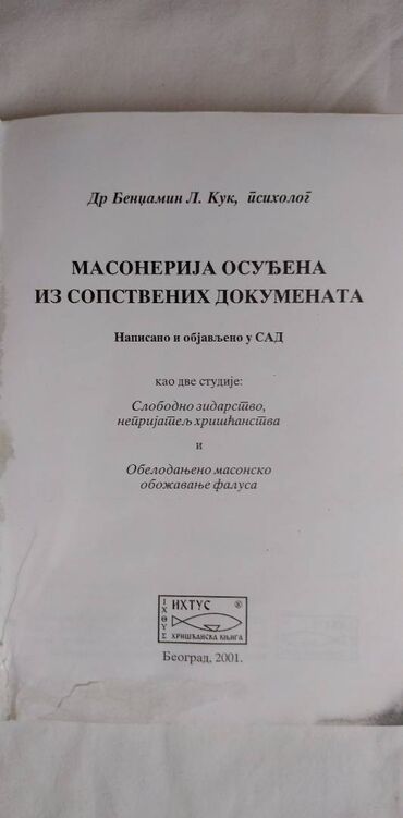 Knjiga:Masonerija-Osudjena iz sopstvenih dokumenata 2001,20 cm. 160 str.srp. ostecena 1.str.