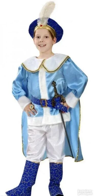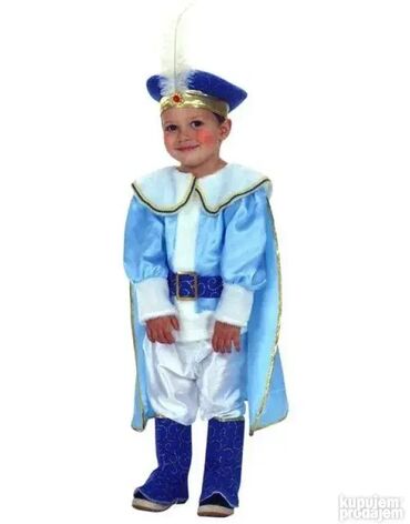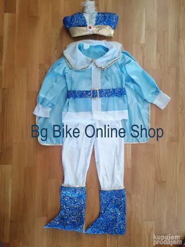 Ko želi dodatno štap za princa - 450 dinara Naše slike uživo Kostim se sastoji iz: 5 delova 1) Košulje sa plaštom, 2) pantalona, 3) pojasa 4) krune (mekana kapa sa perom) i 5) čizmica koje se navlače preko obuće. Za uzrast od 1 do 3 godine - košulja duzina 40cm, duzna plasta 54cm, duzina pantalona 47cm. Nema na lageru Za uzrast od 4 do 6 godina - uskoro pitajte Za uzrast od 7 do 9 godina - NOVO Kostimi za decu , preko 400 modela deciji kostimi za maskenbal, maskembal , maska maske za halloween noc vestica ili zurku POGLEDAJTE OSTALE NASE OGLASE Ovaj artikal mozete poruciti na sledece nacine: 1) Porukom ovde na sajtu sa podacima za slanje i brojem telefona 2) Pozivom na mobilni ili Porukom SMS, Viber, Whatsapp ( Trudimo se da odgovorimo i posaljemo artikal u kratkom roku. Pre slanja cemo obavezno jos jednom potvrditi detalje. Robu saljemo Post Expressom. Postarinu placa kupac prema cenovniku koji mozete videti na njihovom sajtu. Robu mozete preuzeti i licno na Novom Beogradu uz obavezan prethodni dogovor. Povracaj i reklamacije na robu u skladu sa Zakonom o zastiti potrosaca. BG BIKE ONLINE SHOP Beograd Maticni broj: 65560429 PIB: