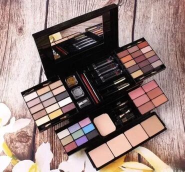 Set za šminkanje uključuje različite proizvode za lice, oči i usne. 👁️💋