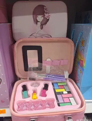 Sadrži šminku i dodatke za manikir (prilagođene deci)