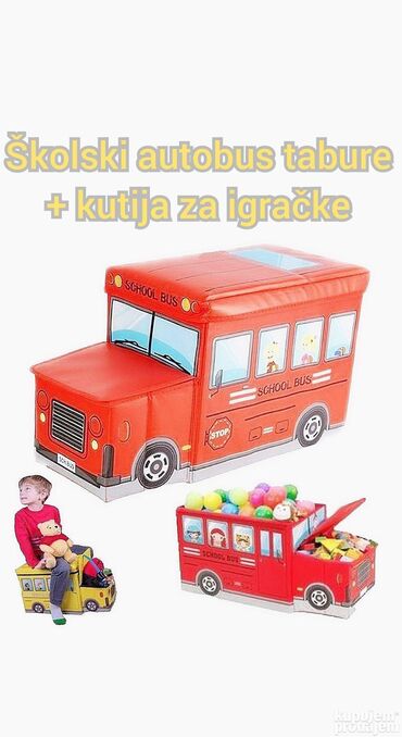Školski autobus tabure + kutija za igračke – Crveni 🚌❤️