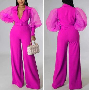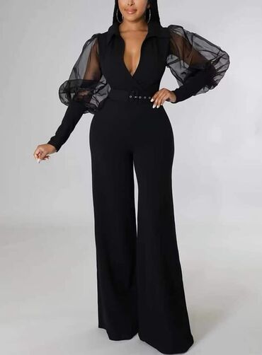 Elegantni ženski kombinezon – belo-crni - Kroj: bez rukava, gornji deo u stilu sako revera; preklopljen V-izrez sa naglašenim crnim paspulom duž revera. - Pantalone: široke nogavice, visoki struk,...
