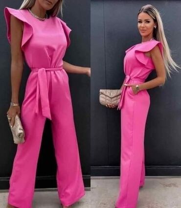 Boohoo elegantni kombinezon za posebne prilike - Model: occasion kombinezon sa širokim nogavicama - Veličina: 36 (odgovara S–M) - Materijal: deblji saten sa blagim sjajem, prijatan i lepo pada - B...