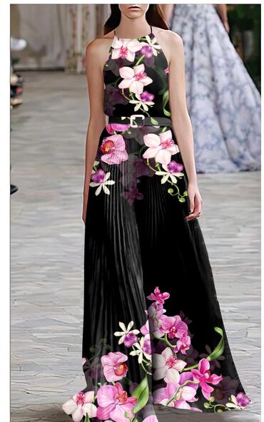 Elegantni ženski kombinezon sa širokim nogavicama - Kroj: struk naglašen, gornji deo sa tankim bretelama i V-urezom na dekolteu; pantalone široke, sa dekorativnim preklopima/ panelima napred koji ...