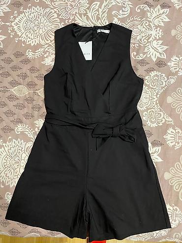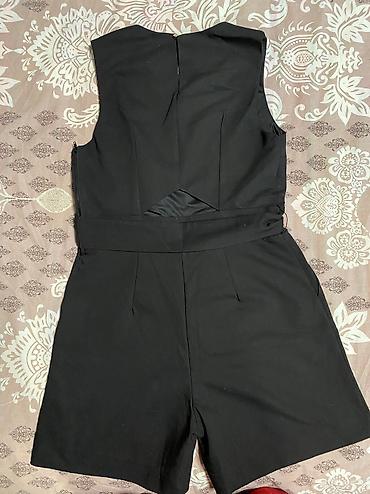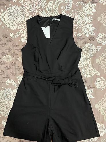 Elegantni ženski kombinezon – crni, dugački rukavi, duboki V izrez. Asimetričan prednji deo sa drapiranim čvorom u struku vizuelno sužava liniju i ističe siluetu. Jedna polovina je ukrašena sjajnim...