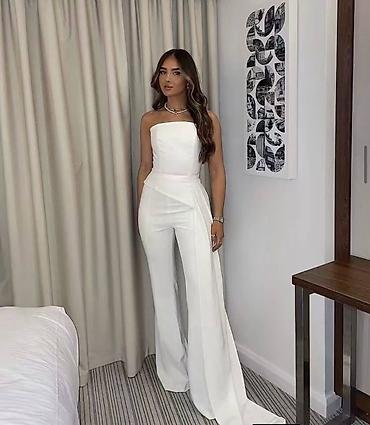 Ženski kombinezon „Life“, veličina M (38–40). - Model: uski, dugih nogavica, struk naglašen. - Dizajn: tamnosiva osnova sa belim vertikalnim prugama koje vizuelno izdužuju figuru. - Gornji deo: šir...