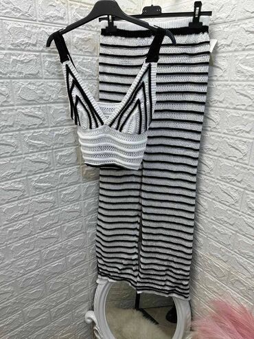 Beli komplet suknje i topa - Dva dela: uska midi/duga suknja visokog struka i top bez bretela - Veličina: univerzalna Stanje: Nov, obučen jednom, ima flekicu na donjem delu suknje, prikazana na po...