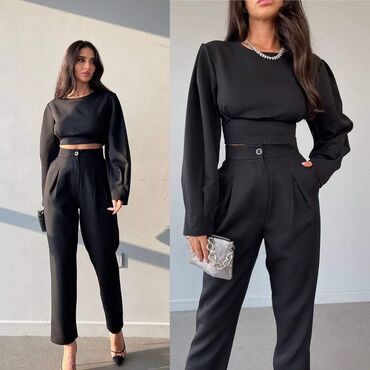 Damski komplet – rebrasti pleteni duks i suknja, crna boja. - Materijal: elastičan, rebrasti plet (prijanja uz telo, udoban za celodnevno nošenje) - Gornji deo: duži duks/bluza sa okruglim izrezom...