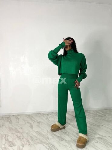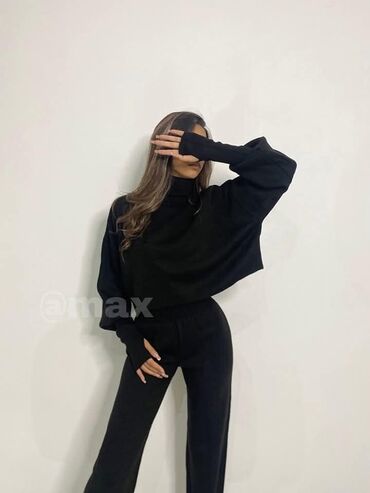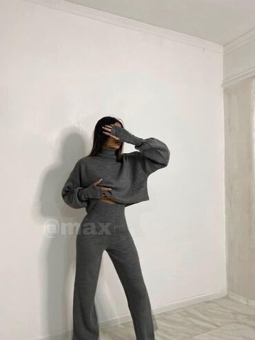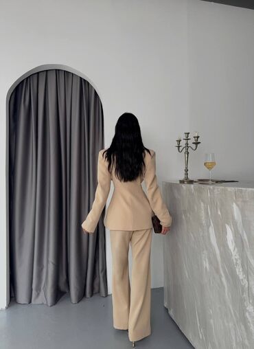 Ženski dvodelni komplet – top i pantalone sa zvonastim nogavicama - Dizajn: dugi rukavi, visoka kragna, atraktivni prorezi na prednjem delu i otvoren leđni deo; top je spojen sa donjim delom stvar...